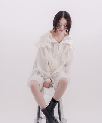 独自のカッティングと構築的なフォルムによって生まれるシルエットは、日常にさりげない違和感と新鮮さをもたらす。