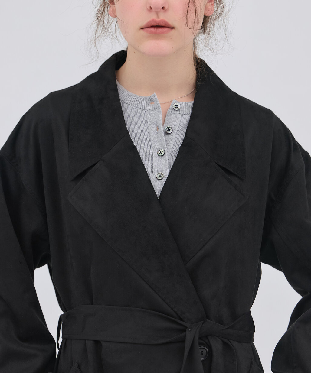 羽織った時もぼやけず、すっきりとした印象に。