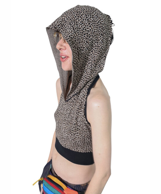 Cropped Hoodie Knit Top / Mix