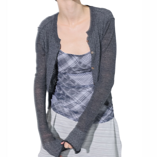 Silk Thin Cable Knit Cardigan / Gray