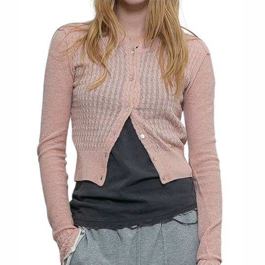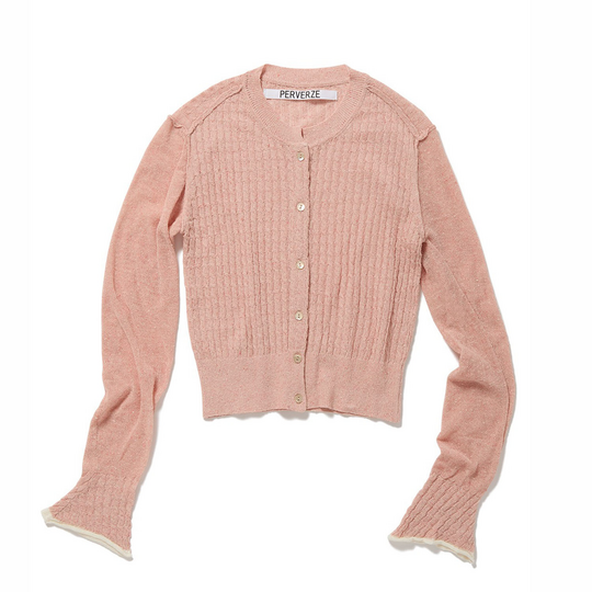 Silk Thin Cable Knit Cardigan / Pink