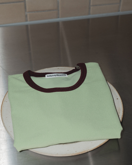 コットンタッチのパイル地リンガーTをベースに、丈感をコンパクトに再構築した別注モデル。